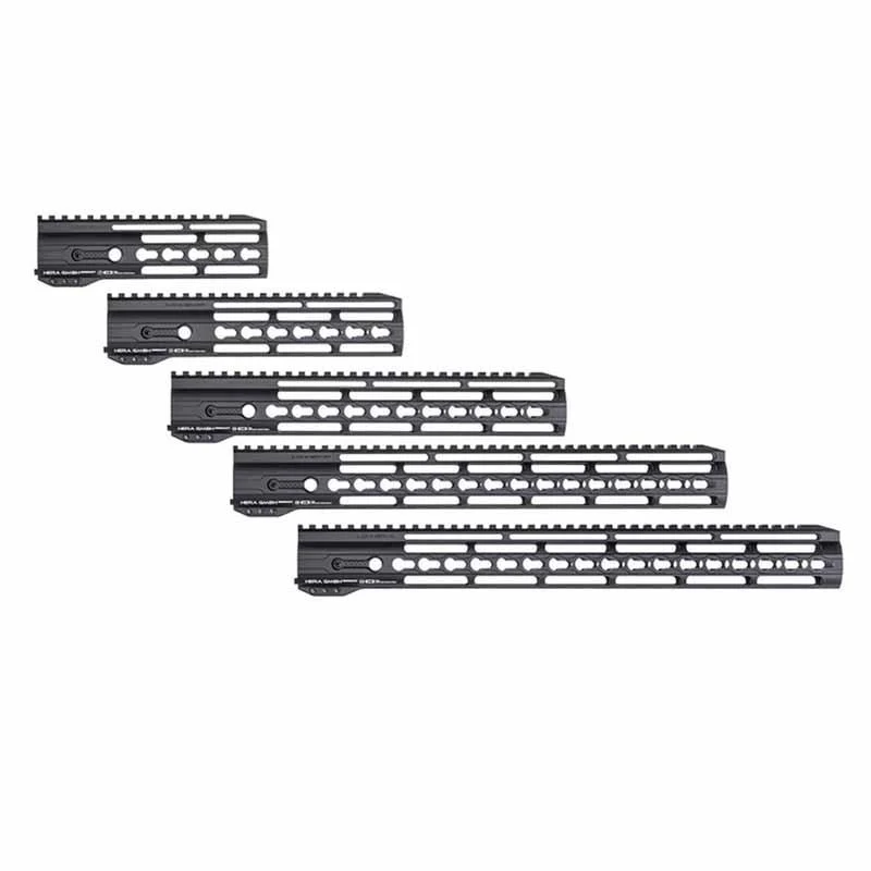 This HERA IRS KEYMOD is an easy to install handguard. It is extremely light and has the elegant Hera design. Thanks to the consistent implementation of the integral approach and the use of high-quality aluminum. The handguards are available in black. Thanks to Hera’s own barrel retaining nut, all HERA handguards are mutually compatible and interchangeable. The IRS KEYMOD is available in lengths of 7 “, 9″, 12″, 15” and 16.5 “.