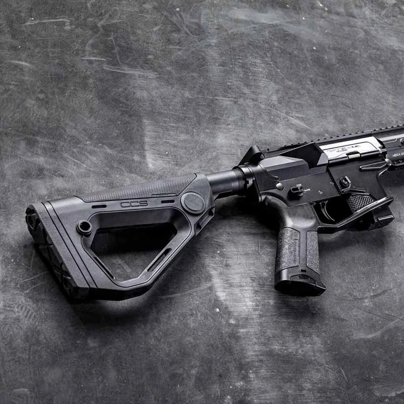 Want more customization to your CCS? Consider applying our decorative stickers, made just for this stock. These are luxe stickers with a heavy duty texture you can be confident that it will withstand any conditions without blemishes or peeling off. Choose black camo or textured carbon fiber. The CCS stock also includes mono pad rails to facilitate the attachment of monopods.