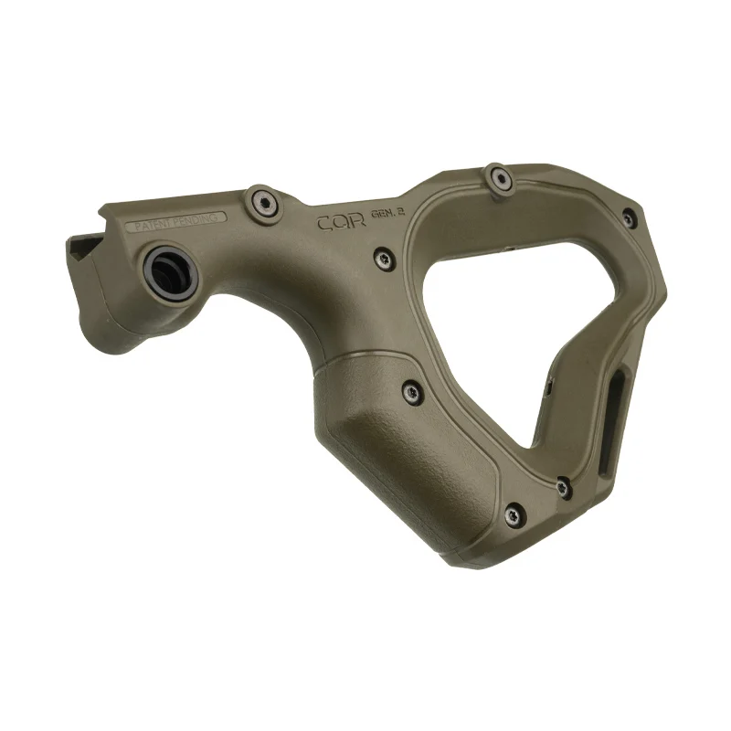 Crafted from impact-modified polymer, the CQR Gen 2.0 fore-grip and buttstock boast lightweight properties without compromising durability, enabling agile maneuverability without sacrificing performance. Available in black, tan, and green, these components offer both aesthetic appeal and functional excellence.
