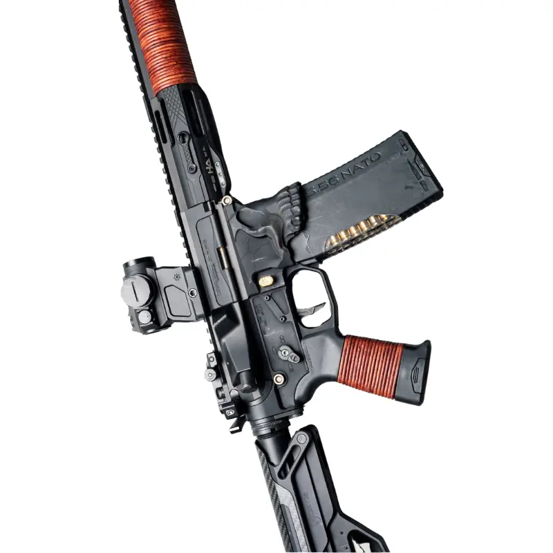 The Hera Arms H15GL Pistol Grip offers an innovative leather grip for the AR-15/AR-10 platform, combining elegance and functionality. The inner compartment at the bottom of the handle is ideal for storing smaller items such as batteries. Made from fiberglass-reinforced and impact-modified polymer, this grip is extremely light, robust, and long-lasting.