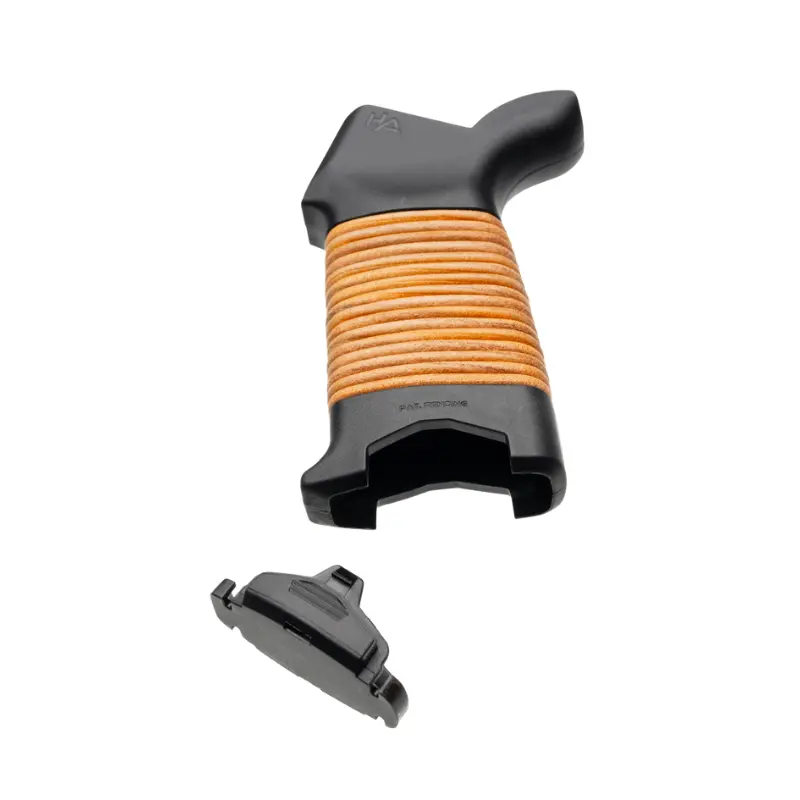 The Hera Arms H15GL Pistol Grip offers an innovative leather grip for the AR-15/AR-10 platform, combining elegance and functionality. The inner compartment at the bottom of the handle is ideal for storing smaller items such as batteries. Made from fiberglass-reinforced and impact-modified polymer, this grip is extremely light, robust, and long-lasting.