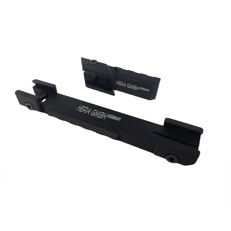 The Hera top rail systems for HK SL8 and G36 enable MIL-STD-1913 accessory installation. Includes short section with 3 rail slots and long section with 5 rail slots.