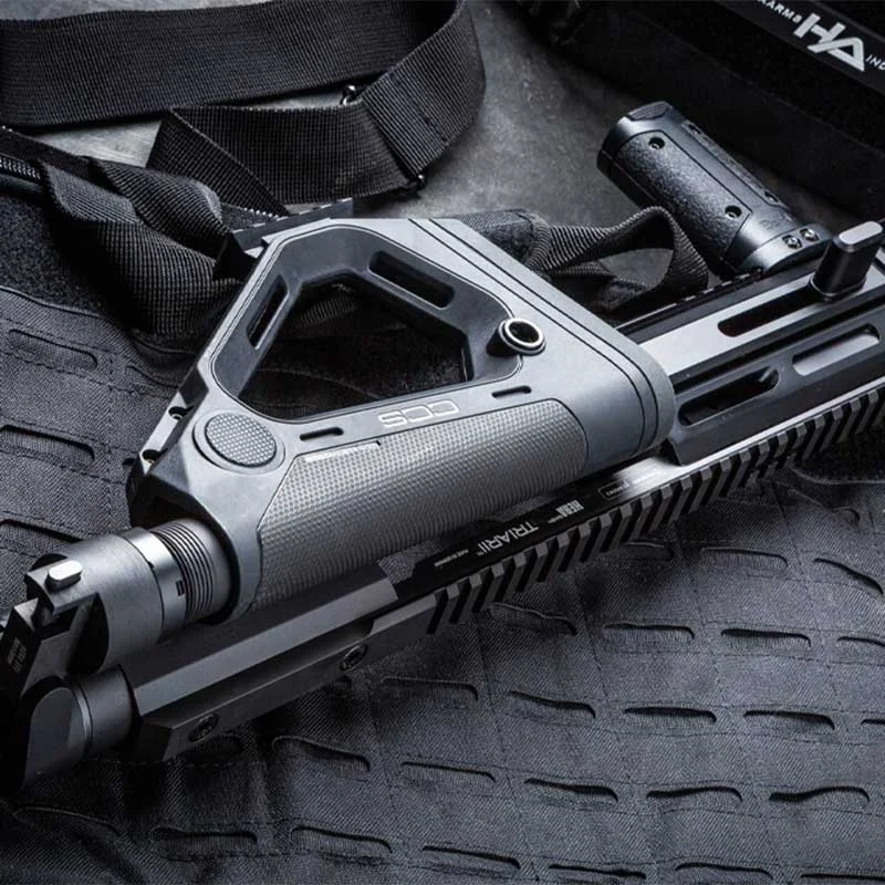 Hera’s Triarii converts Glocks into a carbine, it is an essential accessory for maximizing your pistol’s performance. This Glock carbine conversion kit converts your pistol into a sporty carbine in seconds, without any modifications to the base firearm. Simply insert the pistol and lock using the rotating mechanism. The adjustable buttstock angle ensures a comfortable and secure fit, even with helmets or hearing protection. With Picatinny rails and compatibility with AR15 buttstocks (SBR) and pistol braces, enjoy unparalleled modularity and accuracy.