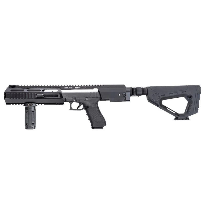 Hera’s Triarii transforms SIG Sauer P226 pistols into carbines, serving as a vital accessory for optimizing your handgun’s capabilities. This SIG Sauer P226 carbine conversion kit swiftly turns your pistol into a sleek carbine without altering the original firearm. Just insert the pistol and secure it with the rotating mechanism. The adaptable buttstock angle guarantees a snug and comfortable grip, even when wearing helmets or hearing protection. Equipped with Picatinny rails and designed to accommodate AR15 buttstocks (SBR) and pistol braces, experience unparalleled versatility and precision.